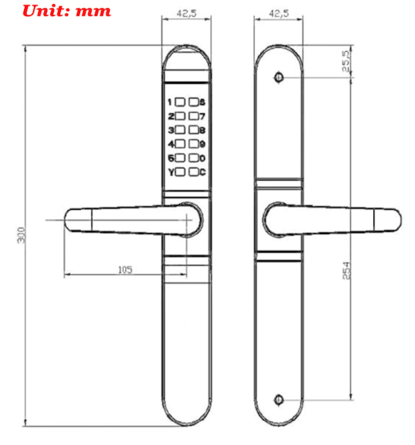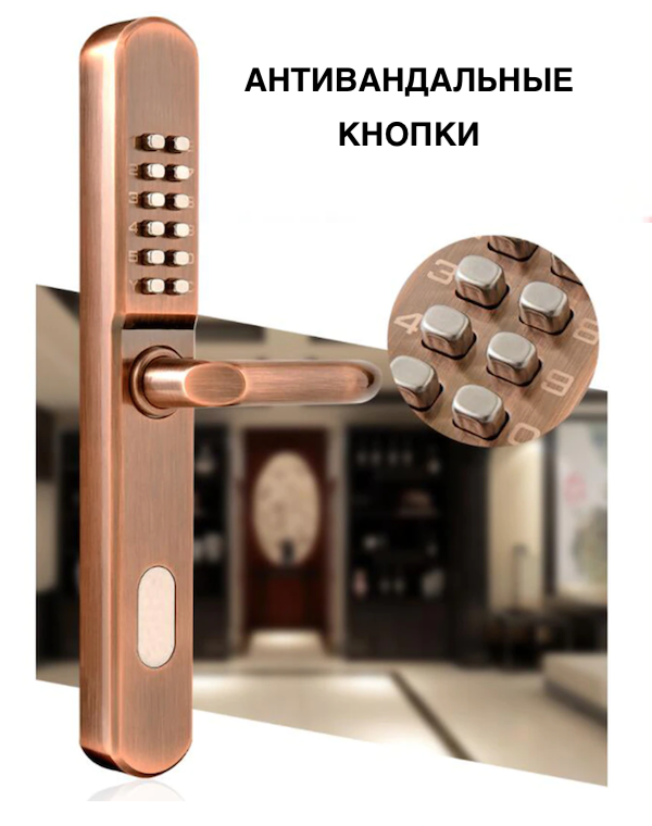 Универсальный механический кодовый замок для установки на любые двери, в том числе на двери из тонкого пластикового или алюминиевого профиля, а также на уличные калитки сваренные из металлической квадрат-трубы.