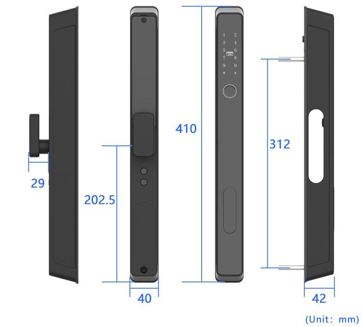 Біометричний смарт-замок для будь-яких дверей, зокрема для дверей із тонкого пластикового або алюмінієвого профілю. Замок може встановлюватися накладним способом на будь-яку запірну систему з євроциліндром із будь-якою міжосьовою відстанню та має можливість примусового керування запірними механізмами для відкриття й закриття через обертання циліндра.